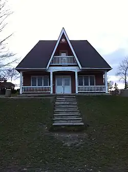 The land was purchased in 1913[40] at a time when the city of Toronto was quickly growing around the college's Deer Park campus and the trustees were considering moving the school to a new location. The 500 acres of land had been purchased by miller Robert Noble in 1868 and managed by his son Dr. Robert Noble Jr.[70] Plans for buildings were drawn up by an architectural firm. However, due to the outbreak of the First World War and then the depression, the move was fully abandoned in the 1930s.[16] The college first attempted to sell the land in 1928 and again in 1935, but found no buyers.[71] Eventually, the property was developed into an outdoor education centre for UCC students and community. Beginning in 1913, an annual picnic was held at Norval, the first being catered by the King Edward Hotel. As the land had originally been cleared for agricultural use, much of the site was open field until over 700,000 seedlings were planted by staff and students through the 1940s,[72] followed by the creation of an arboretum in 1962.[71] The first bunk house was built in the 1930s and augmented in 1967 by another, larger residence and dining building known as Stephen House,[16] which won a Massey Medal for excellence in architecture for the designer, Blake Millar.[41] Stephen House contains a classroom and laboratory, in addition to the residential spaces for students and staff. There is also a bungalow-style residence for the property caretaker and in 2003 several log cabins were built for writing retreats.
