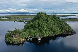 Kapuas Hulu Regency is a regency in West Kalimantan province of Indonesia. Located around the upper drainage area of the Kapuas River, it has a total land area of 31,318.25 square kilometres or around 21.3% of West Kalimantan province's area. The regency seat is located in town of Putussibau, where most of its economic and government activities take place. Kapuas Hulu Regency is one of the few Indonesian regencies having a land border with another country (in this case, with Malaysia). It is also the largest regency in the province by land area. Due to its relatively large area, it is sparsely populated compared to neighbouring regencies around it.[3] The regency had a population of 222,160 at the 2010 Census[4] and 252,609 according to the 2020 Census;[5] the official estimate as at mid 2024 was 265,772 (comprising 136,173 males and 129,599 females).[1]