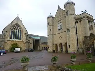 In 1584 Uppingham School was founded with a hospital, or almshouse, by Archdeacon Robert Johnson. The original 1584 schoolroom in Uppingham churchyard is still owned by the school and is a Grade I listed building.[2] The original hospital building is now incorporated in the School Library.