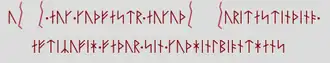 - Ulfr ok Guðfastr ok Guðmundr þ[eir l]étu rétta stein þenna eptir Ófeig, fôður sinn. Guð hjalpi ônd h[a]ns.[5]