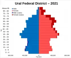 Ural Federal District (Russian: Уральский федеральный округ, IPA: [ʊˈralʲskʲɪj fʲɪdʲɪˈralʲnɨj ˈokrʊk]) is one of the eight federal districts of Russia. Its population was 12,080,523 (79.9% urban) according to the 2010 census.[2]