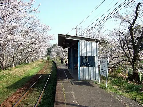 The station is popular with photographers and railfans due to an abundance of cherry blossoms surrounding the station, which creates a picturesque setting during their blooming period.