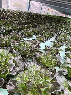 There are various types of agricultural systems in New York City. Two alternate means of growing are: rooftop gardens and hydroponic (soil-less) growing. The New York Times wrote an article about one of Manhattan's first gardens which incorporate both these techniques.[59] Additionally, some urban gardeners have used empty lots to start a community or urban gardens. However, the soil must be tested for heavy contamination in city soil because of vehicle exhaust and remnants of old construction. Regardless, there are hundreds of urban gardens across New York City. Controlled environment agricultural systems are also becoming increasingly common. According to one study, controlled environment agriculture systems in New York City have increased access to produce for some low-income communities and have created green-sector job opportunities.[60] Proponents of hydroponic systems in particular have argued that producers like Gotham Greens have allowed city residents access to high nutrient produce within hours of its harvest.[61]