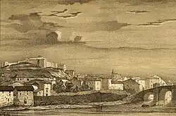The 19th century was of vital importance because, in the 1860s, the arrival of the railway significantly influenced urban planning.[18] The Peninsular War left the city in a deteriorated state, leading to the demolition of the city wall's gates, whose stones were repurposed for the reconstruction of other buildings, notably the cemetery. On February 20, 1815, the demolition of the San Joseph gate was approved, followed by the San Juan and San Francisco gates on March 13 of the same year.