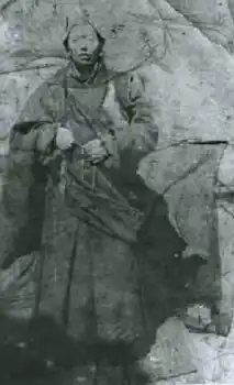 It is also said that Urgyen Tsomo was the reincarnation (emanation) of Yeshe Tsogyal, the wife of Padmasambhava of the 8th century, an Indian tantric master who established the Nyingma school of Tibetan Buddhism in Tibet. Following the death of the Karmapa, Urgyen Tsomo moved to a retreat in the monastery with her sadhana and became a hermitess. Through continuous recitation of mantra, she achieved a "profound level of experience and realization".[2] She became highly revered and was shown the same respect as would be given a lama.[1][3] On special occasions, Urgyen Tsomo was given a seat of honuor on a throne which was "as high as Khyentse or Kongtrul".[4] In 1959, she moved from Tibet along with the 16th Karmapa and settled down in a nunnery near the Karmapa's monastery in Sikkim, where she died after a few years.[1] Tulku Urgyen Rinpoche, who had met her in Tibet, called her a very special person, a great dakini.[2][3]