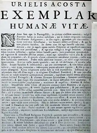 - ^ Acosta, Uriel; Gebhardt, Carl (1922). Die Schriften des Uriel da Costa. Amsterdam, M. Hertzberger. pp. 1–10.