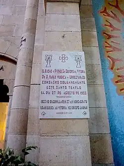 On August 27, 1933, Bishop Mateo Múgica consecrated the church,[10] which, having enclosed the central nave with a wall and placed doors on the sides, was opened for worship.