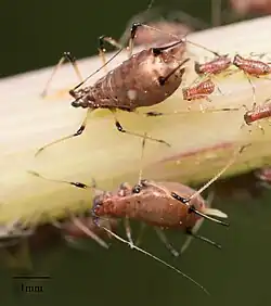 - ^ Reinink, K.; Dieleman, F. L. (1989). "Resistance in lettuce to the leaf aphids Macrosiphum euphorbiae and Uroleucon sonchi". Annals of Applied Biology. 115 (3): 489–498. doi:10.1111/j.1744-7348.1989.tb06569.x.