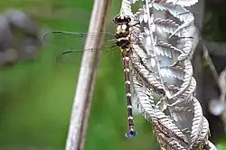 Uropetala carovei (New Zealand bush giant dragonfly) is a giant dragonfly of the family Petaluridae, endemic to New Zealand. Its Māori name, kapokapowai (or kapowai)[2] means "water snatcher", alluding to the water dwelling juvenile stage (nymph), which, like all dragonflies, has a long extendable jaw that shoots out to snatch prey. It is also known as Carové's Giant Dragonfly.[3][4]