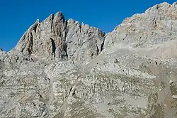 The Urrieles Massif or the Central Massif is a mountainous massif in the north of Spain, one of the three massifs that make up the Picos de Europa,[1] and in turn, one of the stretches of the Cantabrian Massif belonging to the Cantabrian Range. The other two massifs are the Cornión and Ándara. Of the three, it is the tallest. The unique formation of the massif is the result of glacial activity.[2]