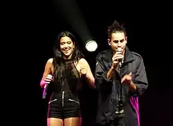 Us the Duo was an American folk pop duo consisting of ex husband-and-wife[1] Michael Alvarado and Carissa Rae Martin. The duo met in Los Angeles, California, United States, in 2011 on the set of an AJ Rafael music video. They got married in 2012. In 2013, the duo started uploading six-second cover versions of popular songs to their Vine account, where they amassed 5 million followers as of the time when vine shut down in January of 2017. In March 2014, they were signed to Republic Records. They are reported as being the first musicians to have signed to a major record label due to their presence on Vine.[2][3]