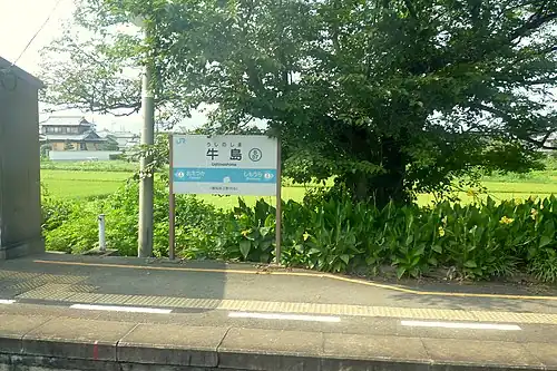 Ushinoshima Station (牛島駅, Ushinoshima-eki) is a passenger railway station located in the city of Yoshinogawa, Tokushima Prefecture, Japan. It is operated by JR Shikoku and has the station number "B07".[1][2]