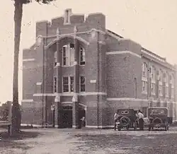 Kathryn Chicone Ustler Hall (formerly known as the Women's Gymnasium and University Gymnasium) is a historic building on the campus of the University of Florida (UF) in Gainesville, Florida. It was designed by William Augustus Edwards in the Collegiate Gothic style and opened in 1919 as the University Gymnasium. In that capacity, the building was the first home of the Florida Gators men's basketball team, and it continued to serve as the home court for most of the university's indoor sports programs until the Florida Gymnasium opened in the late 1940s. The university became co-educational at about the same time, and the building was rechristened the Women's Gymnasium and was repurposed as a recreation center for the school's many new female students. On June 27, 1979, it was added to the U.S. National Register of Historic Places.