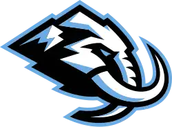 On May 7, 2025, on the day the permanent "Mammoth" name was unveiled, a new logo and uniform set were unveiled to accompany the name change. Using the same blue, black, and white color scheme, the logo features a "Mountain Mammoth" with the top of the mammoth's head showing a depiction of mountain peaks, a nod to Utah's Wasatch Mountains. One of the mountains also forms an outline resembling the borders of the state of Utah.[3] For the home uniforms, the "UTAH" wordmark was replaced with the new primary logo. The road uniforms retained the diagonal "UTAH" wordmark, but all text on both uniforms were updated to the new "Mammoth Sans" font. The inaugural season shoulder patches were replaced on the home uniforms by a Utah state outline alternate logo, while the primary mammoth logo replaced them on the road jersey.[49]