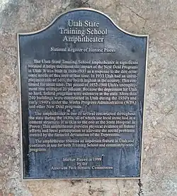 - ^ a b Egleston, Elizabeth (July 1994). "National Register of Historic Places Registration: Utah State Training School Amphitheater and Wall". nps.gov. National Park Service. Retrieved February 14, 2019. and accompanying photos