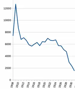 Knight's had a siding 52 ch (1.0 km) north of the station from 1904, when they planned a 7 mi (11 km) tramway.[35] Perham & Larsen also had a mill north of the station,[36] until they moved to Rangataua in 1909,[37] and they and Manawatu Timber Co both had sidings in 1906. As the bush was depleted, mills closed. In 1909 there were 9 mills, but in 1911 only two.[38]