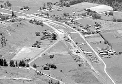 The station was planned in 1902,[9] when work on the line had reached Utiku.[10] Tenders were put out in August 1903, track had been laid as far as Toi Toi Viaduct by February 1904[11] and the 7 mi 75 ch (12.8 km) extension from Mangaweka to Utiku opened for goods traffic on Friday, 27 May 1904.[9] though worked by the Public Works Department. Goods were worked through to Taihape from 4 August 1904.[9] On Saturday, 10 September 1904 Utiku opened for passengers[12] as a flag station, with a shelter shed and platform. Three days later a contract was let to Russell & Bignell of Whanganui for £1203.5s to build the station, which was ready by 21 February 1905. In 1906 a 40 ft (12 m) by 30 ft (9.1 m) goods shed was added.[9] It had a cart approach, loading bank, cattle and sheep yards, fixed signals and a passing loop for 50 wagons, which was extended to 100 wagons in 1970 and 126 by 1980. Due to growing business,[13] the station was enlarged[14] and a stationmaster appointed in 1907. A telephone was added in 1909.[9]