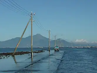 Uto occupies the northern half of the Uto Peninsula and is bordered on the northwest by the Ariake Sea.