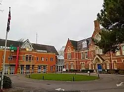 The council is based at the Council Offices on London Road in Saffron Walden.[26] When the council was created in 1974 it inherited offices at 46 High Street, Dunmow from the Dunmow Rural District Council, at 5 Hill Street, Saffron Walden from Saffron Walden Borough Council and at 52 Debden Road, Saffron Walden from the Saffron Walden Rural District Council. In 1988 the former Saffron Walden General Hospital on London Road closed and the site was bought by the council. The original hospital building of 1865 was renovated and a large extension built to its west to become a new headquarters for the council, which opened in May 1990.[27]