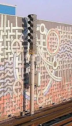 For the restoration of the Gamla stan metro station in 1998 the artist Göran Dahl furnished the walls and floors with motifs from various medieval textiles and manuscripts, including the Överhogdal tapestries and the 14th-century Nobilis humilis (Magnushymnen) from the Orkney Islands. Vädersolstavlan is prominently featured on the eastern wall just south of the platform where the terrazzo wall depicts the emblematic sun dog arcs interwoven with enlarged fragments of textiles.[31]