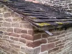 The architecture is characterised by the use of sandstone as a construction material, notably for garden walls, and flagstone roofing.[1]