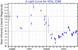 - ^ a b c d e f g h i Clark, J. S.; et al. (2009). "Bolometric luminosity variations in the luminous blue variable AFGL2298". Astronomy and Astrophysics. 507 (3): 1555–1565. arXiv:0909.4160. Bibcode:2009A&A...507.1555C. doi:10.1051/0004-6361/200912358. S2CID 119187994.