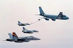 On 24 August 1984, the first F/A-18 Hornet bearing "Stinger" colors was delivered to VFA-125, and the VA-113 pilots began transition training. The squadron was redesignated Strike Fighter Squadron One Hundred Thirteen (VFA-113) on 25 March 1984, and they completed the transition on 14 December 1984, becoming the first operational fleet Hornet squadron. The squadron soon embarked aboard USS Constellation for the first carrier deployment of the F/A-18 with Carrier Air Wing 14 from February to August 1985.