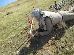 The VS-50 is a circular plastic-cased anti-personnel blast mine that entered production in 1985. It was formerly made by the now-defunct Valsella Meccanotecnica SpA, an Italian high-tech defence company specialized in area denial systems. The company also made the Valmara 69, and was one of the first to implement plastic construction for landmines.[1] The VS-50's design is similar to that of the TS-50 and VS-MK2 mines. It is blast resistant and can be used in a minimum metal configuration. Though unlikely to kill, its explosive charge is quite sufficient to destroy the victim's foot, being capable of penetrating 5 mm of mild steel leaving an 80 mm-diameter hole.