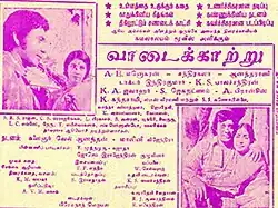 Vaadai Kaatru, based on the novel of the same name by Sengai Aaliyan,[2] is the debut film for Manoharan in a leading role.[3][4] The film was shot in the sand dunes of Pesalai in 1977.[1][5]