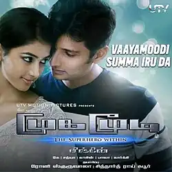 "Vaayamoodi Summa Iru Da" (transl. Shut your mouth and be quiet) is an Indian Tamil-language song, composed by K, with lyrics written by Madhan Karky and sung by Aalap Raju for the soundtrack album of the 2011 Indian film Mugamoodi. The song was shot in Switzerland, featuring the lead actors, were choreographed by Radhika.