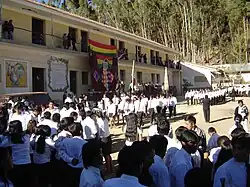 The people are predominantly indigenous citizens of Quechuan descent. In this place Andean customs and the Quechua culture including the usage of Quechua, a Native American language, still play an important part in daily life as well as in several other communities of the Cochabamba Department. According to census 2001 Quechua was spoken by 6,668 of the 12,511 residents of the municipality and Aymara, another Native American language used in Bolivia, by 13 residents.[7] Today many of the Quechua people here are bilingual: They can communicate in Spanish, too. Yet the women are less accustomed to the Spanish language than the men. Many of them speak Quechua exclusively.