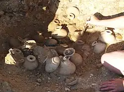 They often acted in concert with their neighbours, the Celtiberi, suggesting that they may have been part of the Celtiberian peoples.[2] They had a strict egalitarian society practising land reform and communal food distribution.[2] This society was part of an Hispano-Celtic substrate, which explains the cultural, socio-economic, linguistic and ideological affinity of the Vaccaei, Celtiberians, Vettones, Lusitani, Cantabri, Astures and Callaeci.[5][6][7] The Vaccean civilization was the result of a process of local evolution, importing elements from other cultures, whether by new additions of people or cultural and trading contacts with neighbouring groups. It is also believed that it was from the Vaccei that the warlike Arevaci stemmed from around the late 4th Century BC to conquer the eastern meseta.