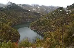 The river and the reservoirs along its course are rich in fish, including autochthonous species such as Macedonian vimba,[5] stone loach,[6] spined loach,[7] round-scaled barbel,[8] river trout,[9] northern pike[10] and the critically endangered European eel.[11] The asp is considered extinct from the river.[12]