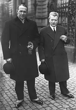Berlin soon became a key position in Lithuanian foreign affairs,[14] particularly after January 1923 when Lithuania organized the Klaipėda Revolt and took over the Klaipėda Region (Memel Territory) which was detached from Germany by the Treaty of Versailles. Sidzikauskas became heavily involved with negotiating Klaipėda's status and maintaining good relations with Germany which was the largest trading partner of Lithuania and its key supporter against Poland.[14] While residing in Berlin, starting in April 1924, Sidzikauskas also represented Lithuania in the Kingdom of Hungary and the Austrian Republic.[11] Sidzikauskas supported the December 1926 coup by Lithuanian military and helped to convince President Kazys Grinius to resign in favor of Antanas Smetona.[15] He also took care to observe constitutional formalities so that not to jeopardize Lithuania's international recognition.[16] In early 1927, it was decided to close the Lithuanian delegation at the League of Nations and to replace Dovas Zaunius with Sidzikauskas as the Lithuanian non-resident envoy to Switzerland.[10] In 1927–1928, Sidzikauskas led negotiations of the German–Lithuanian Trade Treaty which allowed Lithuanian farmers to export meat.[17] Germany became the dominant trade partner, and Lithuanian exports to Germany grew from 127 million litas in 1927 to 200 million in 1930.[18]
