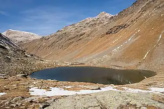 This small mountain lake lies within Val Minor on the border with Italy, at an elevation of 2,361 m (7,746 ft). A hike to the lake usually starts at Bernina Pass.