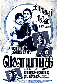 Valayapathi is a 1952 Indian Tamil-language film, directed and produced by T. R. Sundaram. The film stars G. Muthukrishnan, Sowcar Janaki (in her Tamil debut), T. A. Jayalakshmi and K. K. Perumal. Based on the epic of the same name,[1] it was released on 17 October 1952, and failed at the box-office.