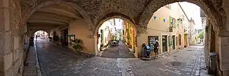 The architecture of the houses of Valbonne is as rigorous as the street layout (see History above). Originally, they were all identical. The ground floor was for deliveries (these are now found half-underground due to a rise in the level of the street). On the first floor was the living room, above, the bedrooms. Finally, the attic, where stores were hoisted up with the aid of a pulley (some examples of these can still be found).