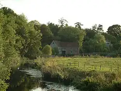 To the south and east, the vale is clearly delimited by the steep escarpments of two areas of higher chalk downland, the Dorset Downs to the south, and Cranborne Chase to the east. To the north and west, the definitions of the vale are more ambiguous, as the landscape changes more gradually around the upper reaches of the Stour and its tributaries. One definition places the boundary along the watershed between the Stour and neighbouring valleys of the Yeo to the west and Brue to the north. A narrower definition places the limits of the vale close to the county boundary and villages like Bourton, where the landscape transitions to hillier greensand, limestone and sandstone geology.[3] In her book on the Blackmore Vale, Hilary Townsend described the northern boundary as "above Gillingham, through Motcombe to Queen Oak and Bourton, then crosses the A303, ignores the A30 and slips down on winding country roads past Bow Brook and Gibbs Marsh towards Sherborne"; while she placed the western boundary outside the Stour watershed "south of Sherborne down Dancing Hill, across the A352 and pick up the line of the River Yeo towards Beer Hackett, Yetminster and Chetnole".[4]