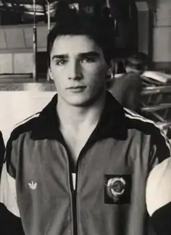 Valentin Viktorovich Mogilny (Russian: Валентин Викторович Могильный; 18 December 1965 – 22 November 2015) was an artistic gymnast who competed for the USSR during the 1980s. His teammates were Yuri Korolev, Dmitri Bilozerchev, Valeri Liukin, and Vladimir Artemov. He trained at the Army Club in Leninsk-Kuznetsky, then moved to Moscow to work with coach Alexander Alexandrov. Mogilny was divorced from his wife Olga Bicherova (1981 world champion), with whom he had a son. Mogilny lived his last years in France, where he became a citizen, and worked as a coach.[1] He died after a heart attack in 2015.[2]