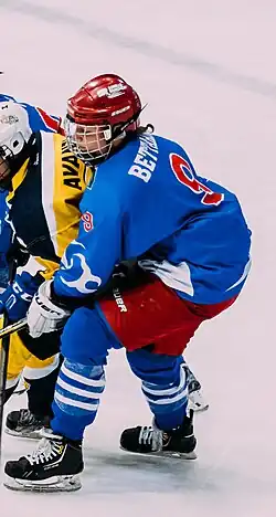 Valentina Bettarini (born 29 June 1990) is an Italian ice hockey player and a member of the Italian national ice hockey team. She currently plays with the EVB Eagles Südtirol in both the European Women's Hockey League (EWHL) and the Italian Hockey League Women (IHLW).[1] She represented Italy in the women's ice hockey tournament at the 2006 Winter Olympics in Torino. At 15 years and 228 days, she was the youngest woman to participate in the tournament.[2]