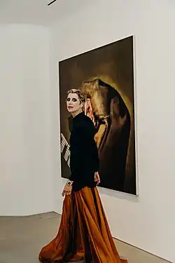 ![]() Valeria Napoleone standing in front of an art piece from her collection | |