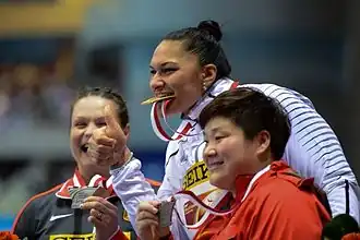 Dame Valerie Kasanita Adams DNZM (formerly Vili; born 6 October 1984) is a retired New Zealand shot putter. She is a four-time World champion, four-time World Indoor champion, two-time Olympic, three-time Commonwealth Games champion and twice IAAF Continental Cup winner. She has a personal best throw of 21.24 metres (69.7 ft) outdoors and 20.98 metres (68.8 ft) indoors. These marks are Oceanian, Commonwealth and New Zealand national records. She also holds the Oceanian junior record (18.93 m) and the Oceanian youth record (17.54 m), as well as the World Championships record, World Indoor Championships record and Commonwealth Games record.