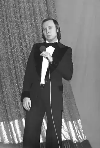 Valery Vladimirovich Obodzinsky (Russian: Вале́рий Влади́мирович Ободзи́нский; 24 January 1942 – 26 April 1997) was a Soviet and Russian singer (tenor), a holder of the title of Meritorious Artist Mari Autonomous Soviet Socialist Republic (1973).[1] He gained wide popularity all over the Soviet Union when in 1964 Oleg Lundstrem invited the popular provincial singer to work as a soloist with his Moscow-based orchestra. A year and a half later, having recorded a number of big hits, Obodzinsky decided to split and continue his career independently. In the 1970s, in part because he only performed lyrical songs and his repertoire was therefore limited, he started experiencing an artistic crisis. He periodically fell into depression and eventually abandoned the stage for over 10 years.[2]