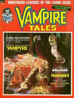 Vampire Tales was an American black-and-white horror comics magazine published by Magazine Management, a corporate sibling of Marvel Comics.[1] The series ran 11 issues and one annual publication from 1973 to 1975, and featuring vampires as both protagonists and antagonists.