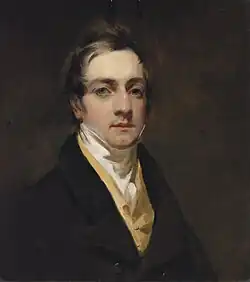 From 1816 to 1819, Livingston, along with Albert Rolaz Gallatin (1800-1890), the second son of Albert Gallatin who was then Minister to France, made a tour of Europe from 1816 to 1819.[1] While in Scotland, he was the guest of his kinsman, Sir Thomas Livingston, where he met and had his portrait painted in Edinburgh by Sir Henry Raeburn in 1819.[7] The painting, or a replica, is now in the collection of the New-York Historical Society.[6]