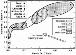 - van Krevelen, D.W. (1950). "Graphical-statistical method for the study of structure and reaction processes of coal", Fuel, 29, 269–84.