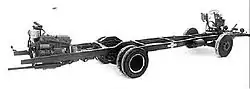 At the end of the building was a crane for ironware handling. When the frames were taken in, they were fitted with suspension and axles, and then turned the right way up. The next parts were the engine and transmission components. The final part for lorries was a pre-assembled cabin. Conventional bus chassis were delivered with bonnet and wings, but the forward control types left the factory without any body parts. After being painted, the vehicles left the assembly hall.[39] Finally, every vehicle was tested on a 100-to-200 km (62-to-124-mile)-long test run on different roads and with various loads. The bus chassis were tested in a similar way; because there was no body, the drivers only had warm clothes and driving goggles to protect them against the weather conditions. The vehicles were handed over to the customers after final adjustments.[39]