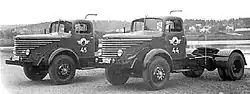The first lorry made in Vanaja was a Sisu S-22 prototype, which rolled out of the factory door on 1 August 1945. After a short and intensive testing period, serial production began on 29 October 1945 but because of a shortage of materials and component quality problems, the first vehicles were not ready until early 1946. The capabilities of the domestic suppliers proved to be very limited and the company was dependent on imported gearboxes, steering components, drive shafts and electrical systems until domestic companies could set up their own production. The Finnish suppliers were unable to meet the requirements with the available materials and experienced severe quality problems.[9] Total production in 1946 was 147 Sisu S-22 vehicles, which was far below the target of 2,000 vehicles. The original, calculated price per vehicle had been 765,000 marks but the eventual cost was 800,000 marks.[10]
