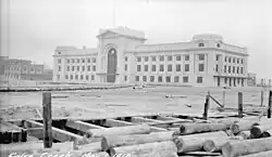 The station was built in 1917 by the Canadian Northern Railway as the terminus of its line to Edmonton.[4] The station was built on reclaimed land that previously was planned for dredging to create a canal between False Creek and Burrard Inlet.[5] It was originally named False Creek Station and was designed by the architecture firm Pratt and Ross.[6] The station was dedicated on November 2, 1919, a day after the first Canadian National Railway (CNR) trains began using the station.[7][8]