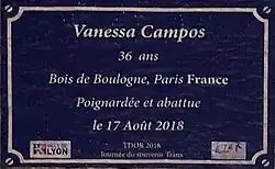 - ^ a b "Rassemblement à Paris en hommage à Vanesa Campos, prostituée trans tuée il y a un an". Le Figaro.fr (in French). AFP. 17 August 2019. Retrieved 10 November 2020.